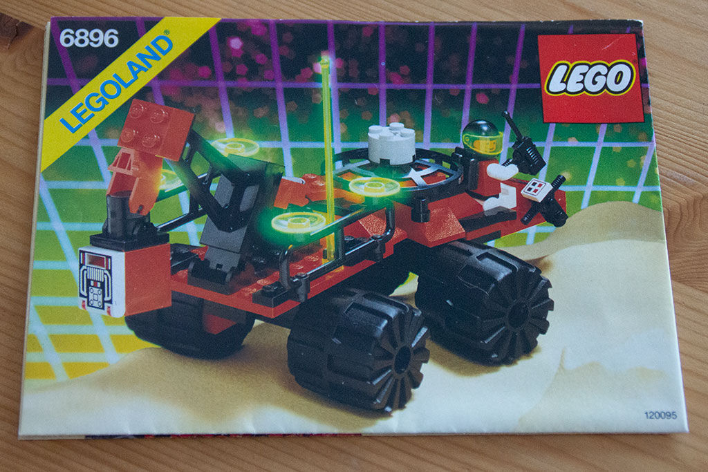Das Set 6896 Celestial Forager ist eines der mittleren Sets, die ich besitze. Ganz erstaunt bin ich über den Zustand der Steine. Die sehen aus wie neu. 30 Jahre im Keller meiner Eltern haben ihnen nicht geschadet. Was mir zuerst aufgefallen ist – es sind Drucke auf den Steinen. Bei den aktuellen LEGO City Sets bin ich inzwischen daran gewöhnt, dass ein Aufkleberbogen beiliegt. Deswegen sind mir die bedruckten Teile gleich positiv aufgefallen.
