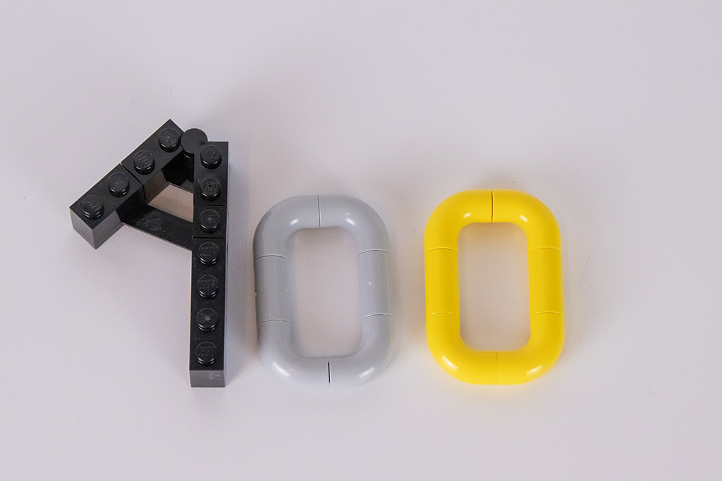 Es soll etwas gebaut werden, das zu den guten Vorsätzen passt oder etwas auf das man sich dieses Jahr freut. Da passt doch eine gebaute 100 wunderbar. Und sie zeigt wo die Reise hingehen wird. So ein bisschen bin ich doch aufgeregt und frage mich auch, ob ich mir nicht zu viel vorgenommen habe. Klar - rein rechnerisch sind es zwei MOCs pro Woche. Dazu kommen jedoch die Fotos und Artikel hier auf der Webseite. Und irgendwann muss ich die Steine auch wieder aufräumen. Sonst habe ich abgesehen von meinen (noch) beschränkten Baufähigkeiten bald einen noch beschränkteren Steinevorrat. Aktuell lasse ich das einfach auf mich zukommen. Es wird bestimmt Zeiten geben, wo ich mehr als die durchschnittlichen zwei MOCs bauen werde. Um dann für Zeiten wo ich es nicht packe, Luft zu schaffen. Fest vorgenommen habe ich mir, die 100 am Ende nochmal zu bauen. Und vielleicht auch mal zwischendurch.