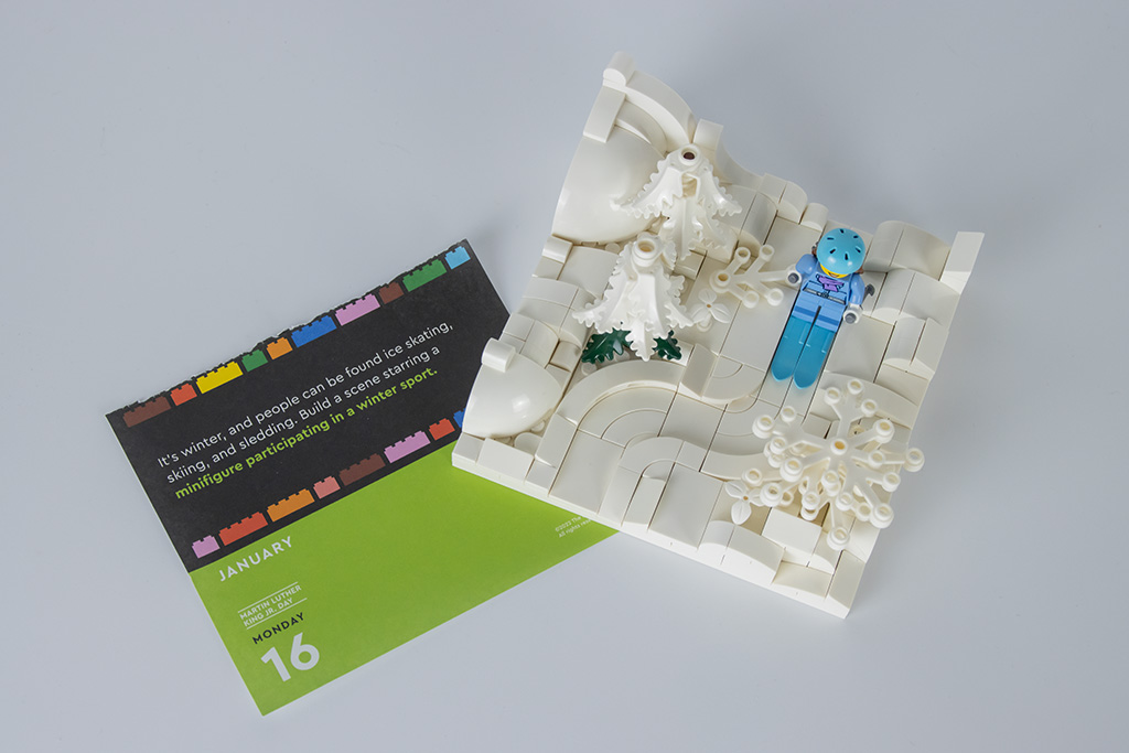 Also das war dann mal wieder was, worüber ich mich richtig gefreut habe. Bis ich angefangen habe weiße Steine zu suchen und mal wieder feststellen musste: Ich habe zu wenig LEGO! Man soll es kaum glauben, aber ja - meine LEGO-Steine-Sammlung ist echt nicht sooo groß. Insgesamt natürlich schon. Da aber das meiste aus zerlegten Sets besteht habe ich immer Probleme Teile einer Farbe zu finden. Mir gefällt meine kleine Wintersport-Szene trotzdem. Und ich hatte sogar die passende Kleidung und Zubehör in meiner Sammlung.