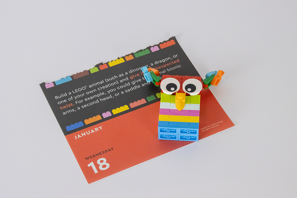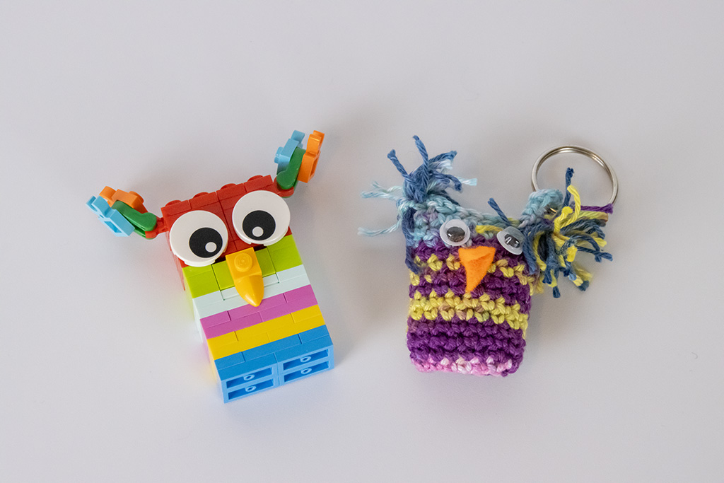 Heute sollte ein Tier gebaut werden - mit einem besonderen Twist. Ganz ehrlich. Im ersten Moment war ich völlig überfordert. Ein Tier? Wenn ich da an die diversen Creator Tiere oder die Tuxedo Katze denke... Sowas wäre viel zu kompliziert und langwierig. Und dann soll es ja auch noch abgewandelt werden. Aber dann sind mir meine Häkeleulen eingefallen. Und weil ich die sowieso total witzig finde, fand ich das eine gute Idee. Tatsächlich habe ich bewusst zu den 1x2 Plates gegriffen um den Häkelstich zumindest ein bisschen zu imitieren. Den Schnabel hätte ich auch mit einem 1x2 Brick mit Noppe an der Front befestigen können. Aber ich hatte keine passende Farbe. Deswegen habe ich da ein bisschen rumgespielt und auch wenn es nicht perfekt geworden ist, habe ich dabei wieder was gelernt.