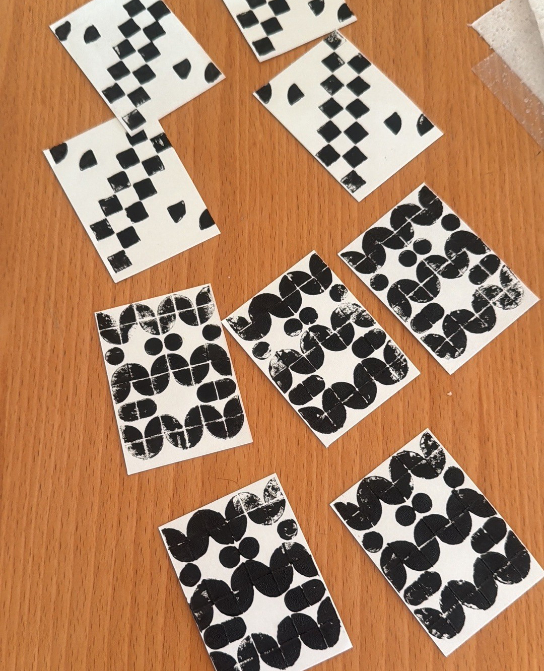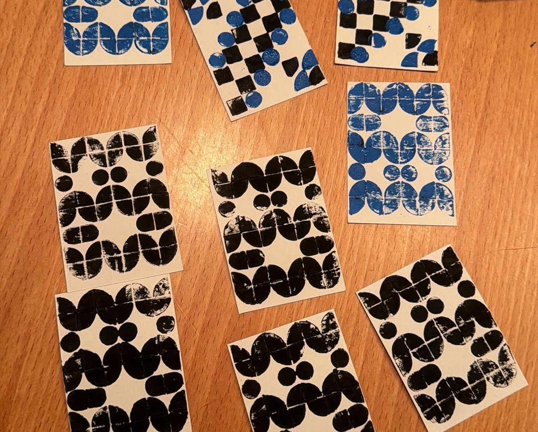 Für den ersten Druck habe ich mir kein besonders spannendes Muster überlegt. Ich wollte einfach sehen ob es funktioniert. Und das tut es! Als Tinte habe ich eine Linoldruck-Tinte benutzt. Funktioniert gut und sie lässt sich recht gut abwaschen (zumindest in schwarz).