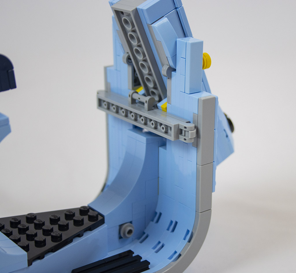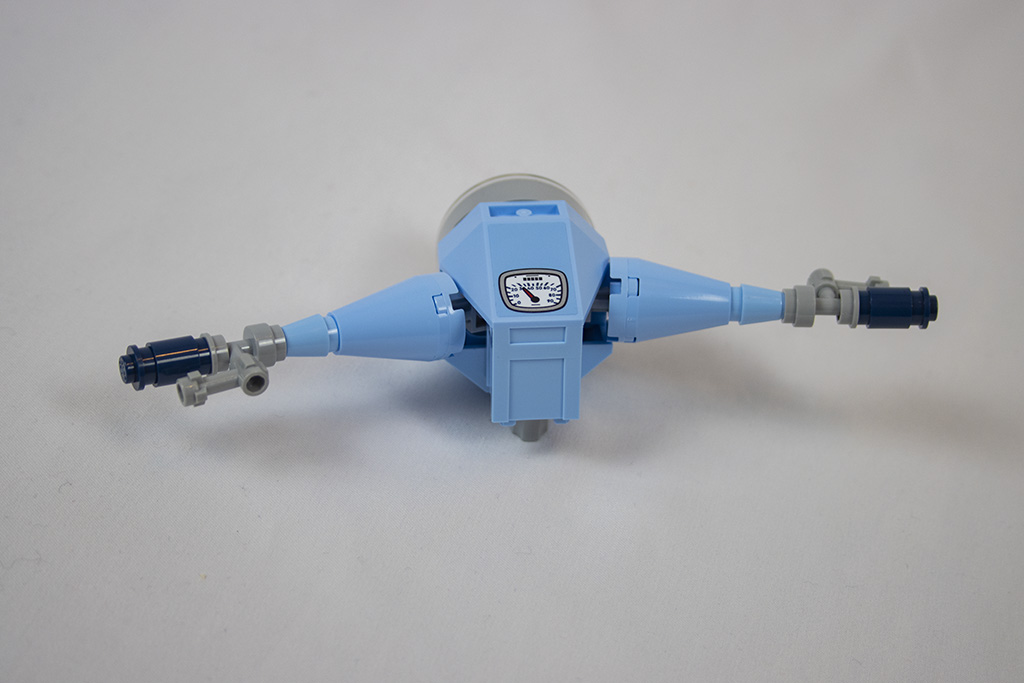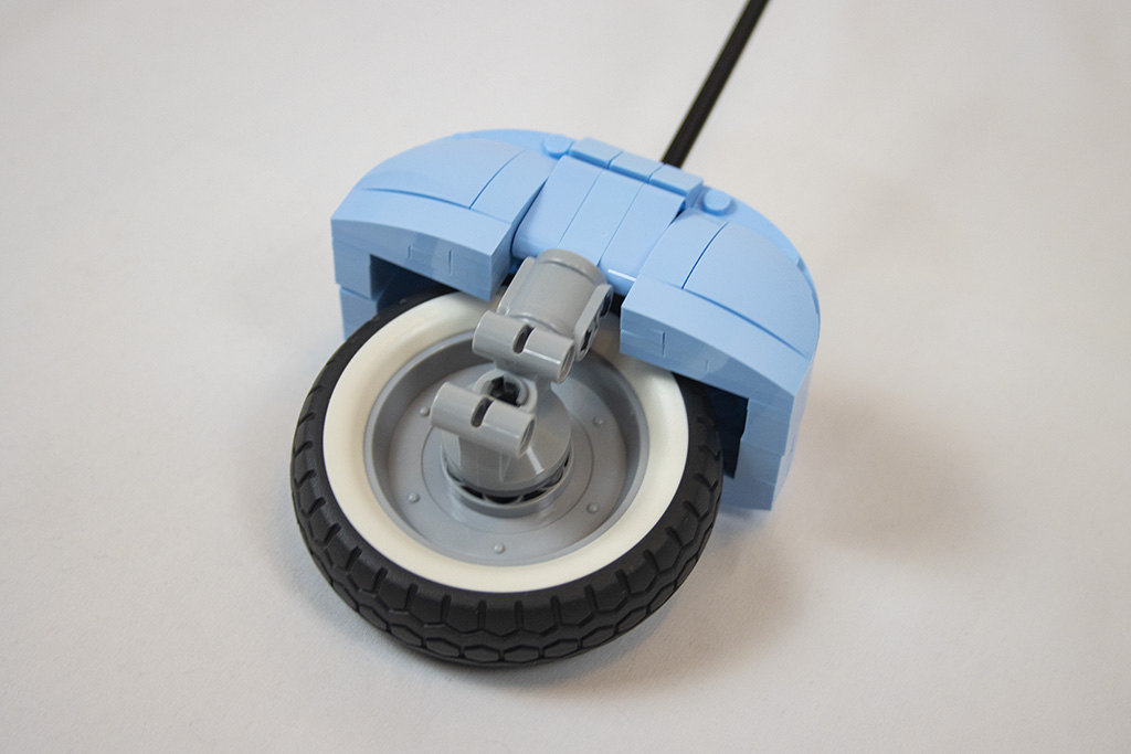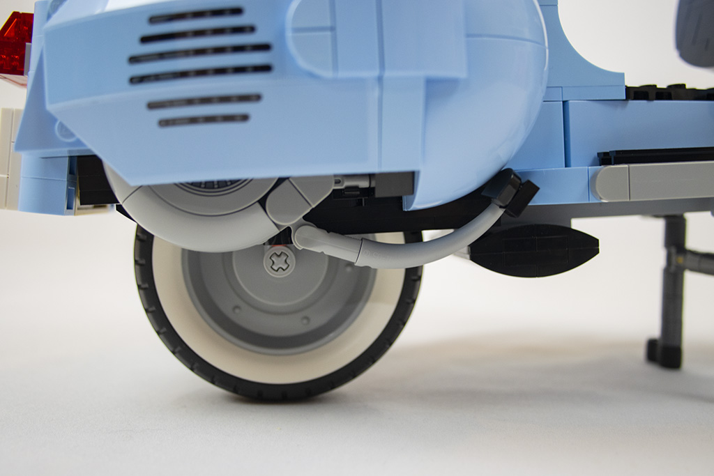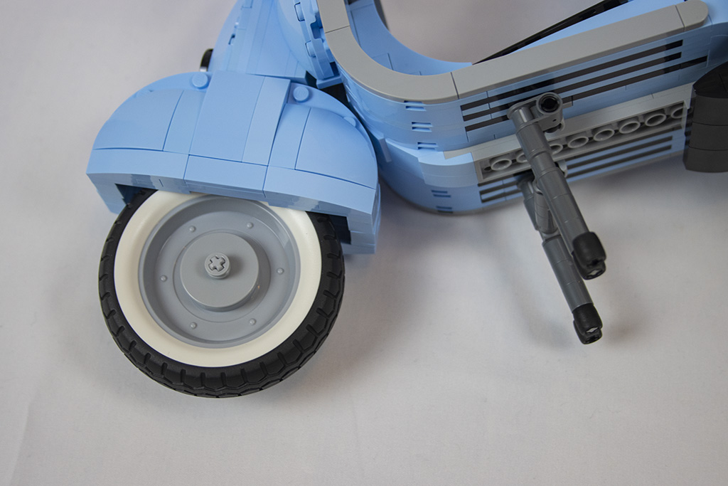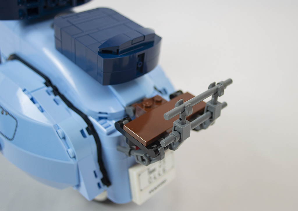 Gleich von Anfang an ist der Bau der Vespa spannend und abwechslungsreich. Es gibt viele seitlich sitzende Noppen und es werden die „Kippsteine“ benutzt. Bei einigem erschließt sich nicht gleich der Zweck, was mir persönlich sehr gut gefällt. Dadurch bleibt der Aufbau spannender.