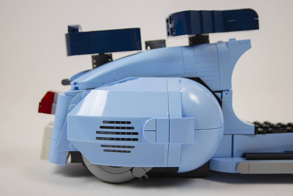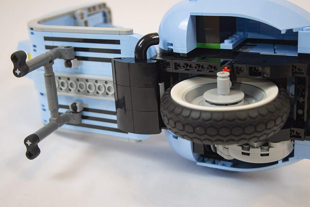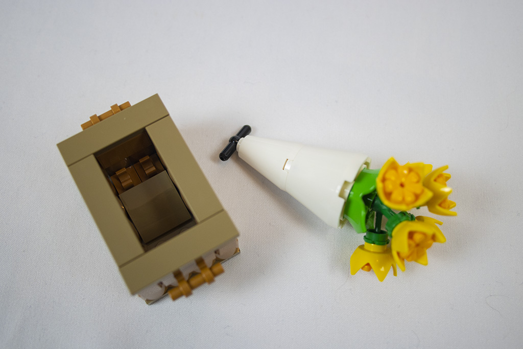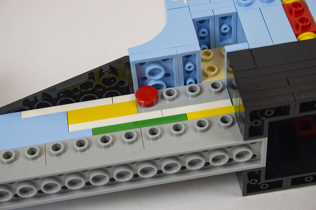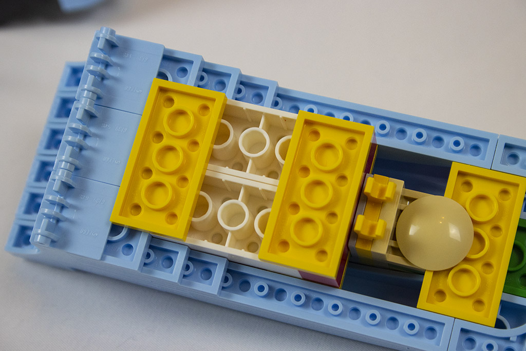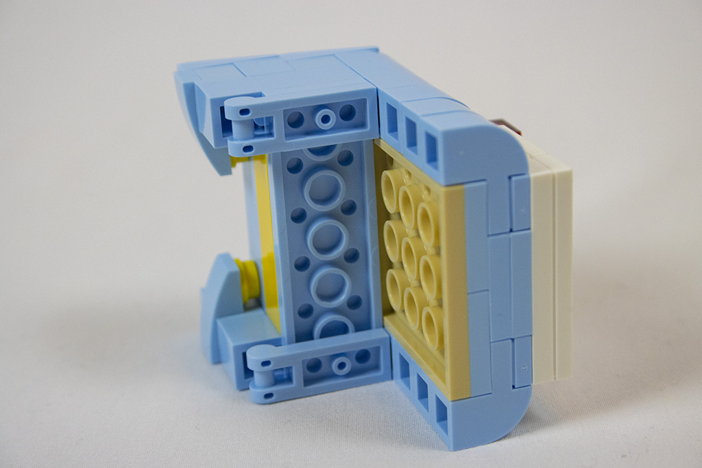 Gleich von Anfang an ist der Bau der Vespa spannend und abwechslungsreich. Es gibt viele seitlich sitzende Noppen und es werden die „Kippsteine“ benutzt. Bei einigem erschließt sich nicht gleich der Zweck, was mir persönlich sehr gut gefällt. Dadurch bleibt der Aufbau spannender.