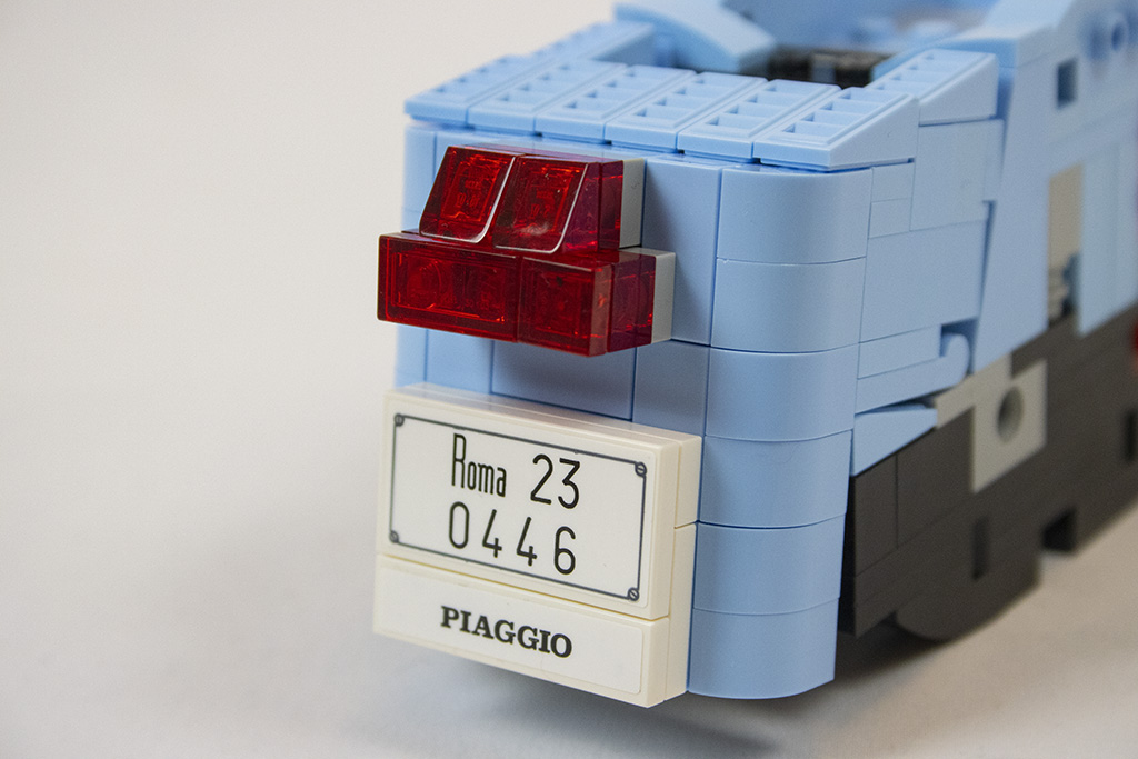Eigentlich bin ich ja Motorradfahrerin (aktuell ohne Motorrad) und kann mit Rollern nicht so viel anfangen. Die Vespa versprüht aber einen gewissen Charme, dem ich mich auch nicht entziehen kann. Besonders in dieser schönen Farbe. Da verbreitet sie so richig Italien-Feeling und ich träume von Urlaub am Meer. Oder im verkehrstechnisch völlig verrückten Rom (zum Glück musste ich nicht selbst fahren). Das Set fängt das perfekt ein und ist wirklich schön gemacht. Sie steht tatsächlich immer noch aufgebaut in meinem Bastel/LEGO-Keller im Regal.