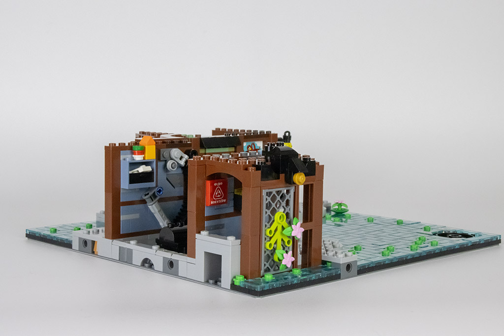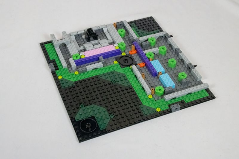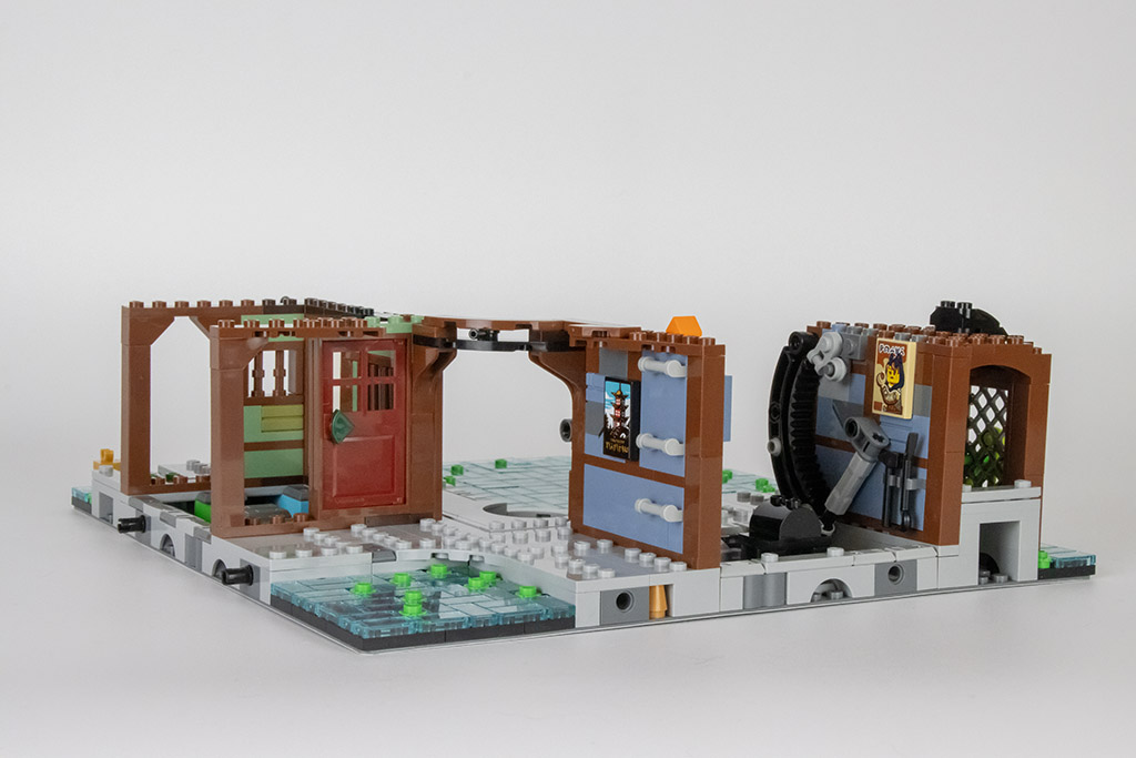 Mit der Erweiterung der Gebäude kommt auch ein Garagentor hinzu. Das kann über einen Drehmechanismus geöffnet und geschlossen werden. Die Öffnung funktioniert bei mir gut – das Schließen hakte ein wenig konnte aber durch leichtes Verdrehen der richtungsgebenden Steine im Inneren der Garage behoben werden.