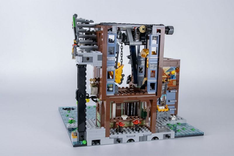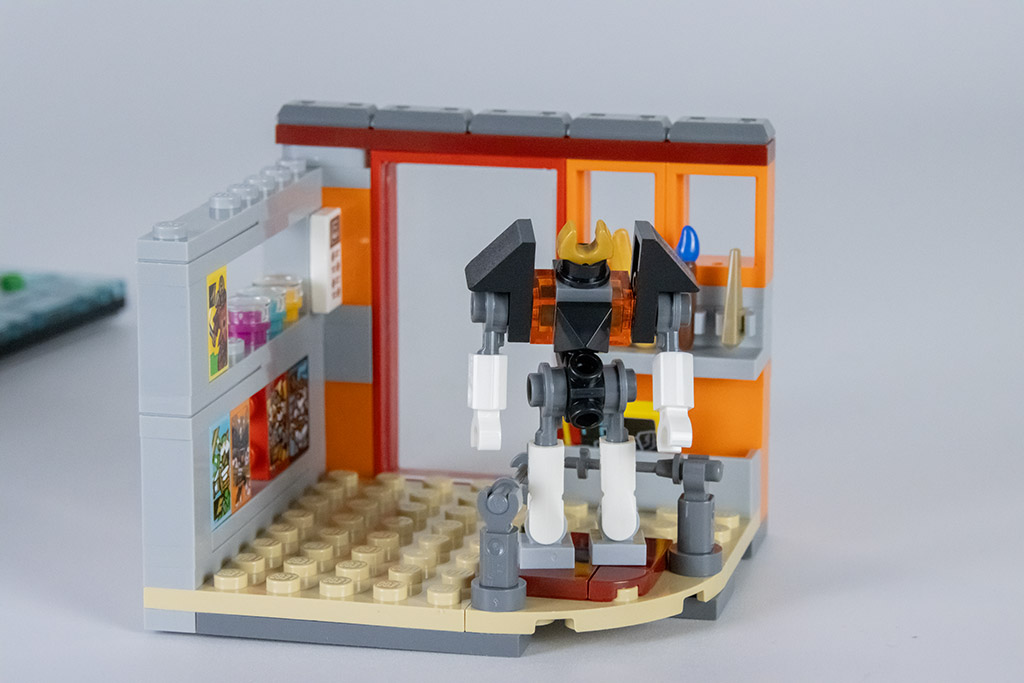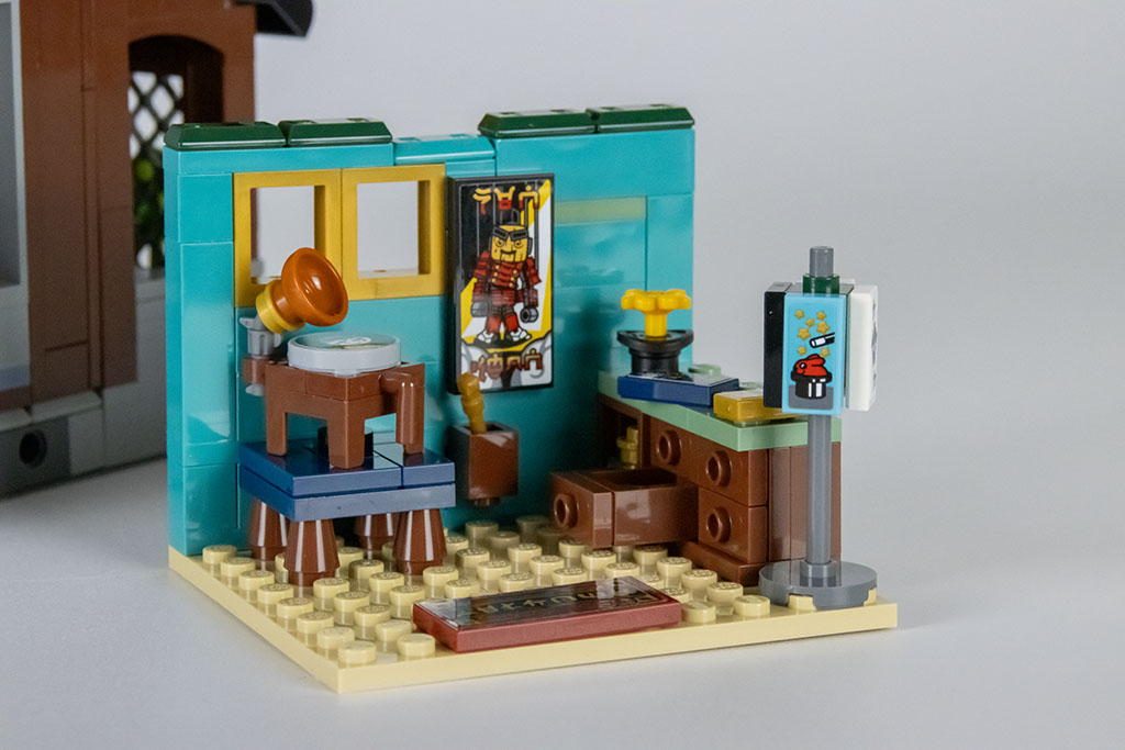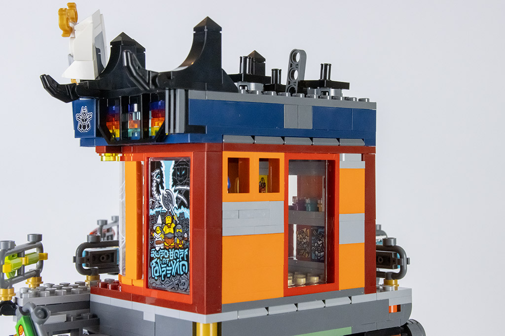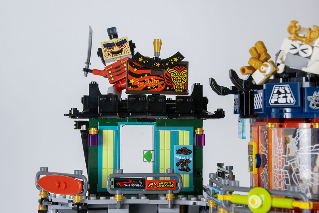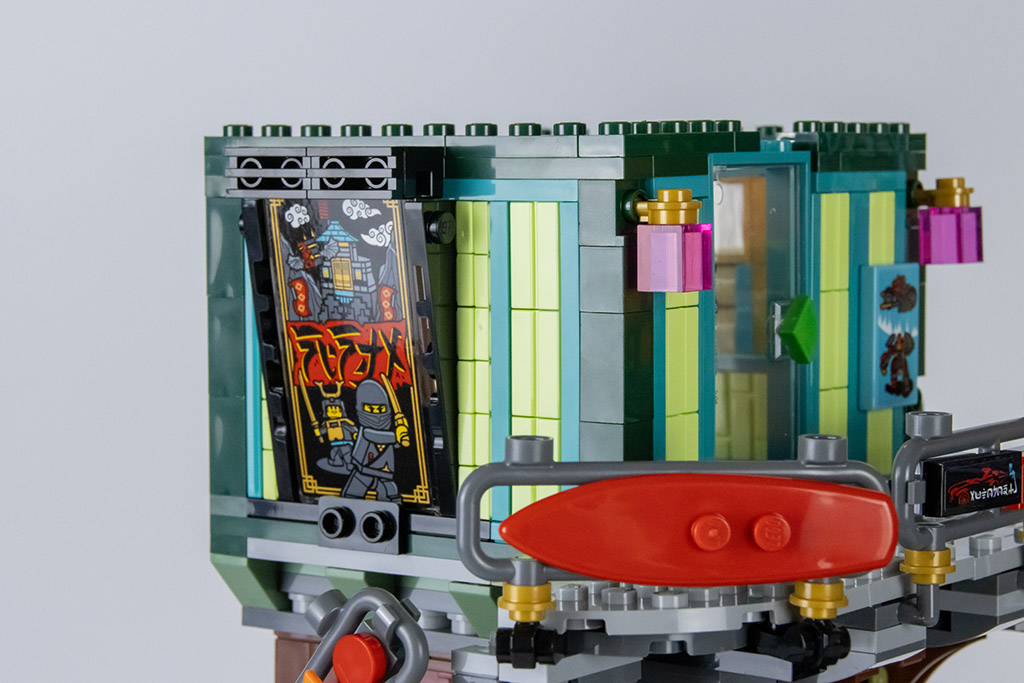 Die Ninjago-City Sets haben mir von Anfang an gut gefallen. Dieses ist kleiner als die Vorgänger, was ich persönlich sogar richtig gut finde. Nicht nur, dass es den Geldbeutel schont – auch die Stellfläche ist etwas entspannter. Wenn die Reihe noch fortgesetzt wird, dann muss die aktuell aufgebaute Artemis weichen, um Platz zu machen. Und dann habe ich echt ein Problem. Weil mehr Stellfläche habe ich nicht. Davon abgesehen gibt es wieder wunderschöne Techniken für die Dächer und viele, viele, viele tolle Details und Bautechniken. Und das alles für einen absolut machbaren Preis. Das bunte Durcheinander mag ich und ich finde, dass sich die Werkstätten gut in das Gesamtbild eingliedern.