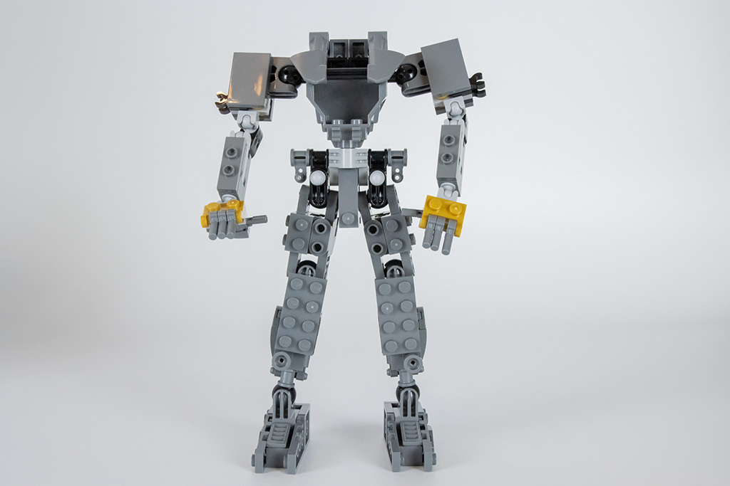 Zu guter Letzt wird der Kran für den Mech und der Mech selbst gebaut. Wie schon angedeutet ist der Mech „nackig“ und die Rüstungsteile sind an diversen Stellen gelagert. Die Anleitung zeigt zum Glück wo alles zu finden ist, und wo man es dann anbringen muss.