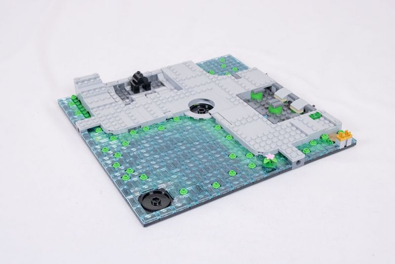 Mit dem ersten Gebäudeteil ändert sich das. Hier ist mir die Umsetzung der Lampe aufgefallen. Dafür wurde eines der neuen Blütenteile in transparent genutzt.
