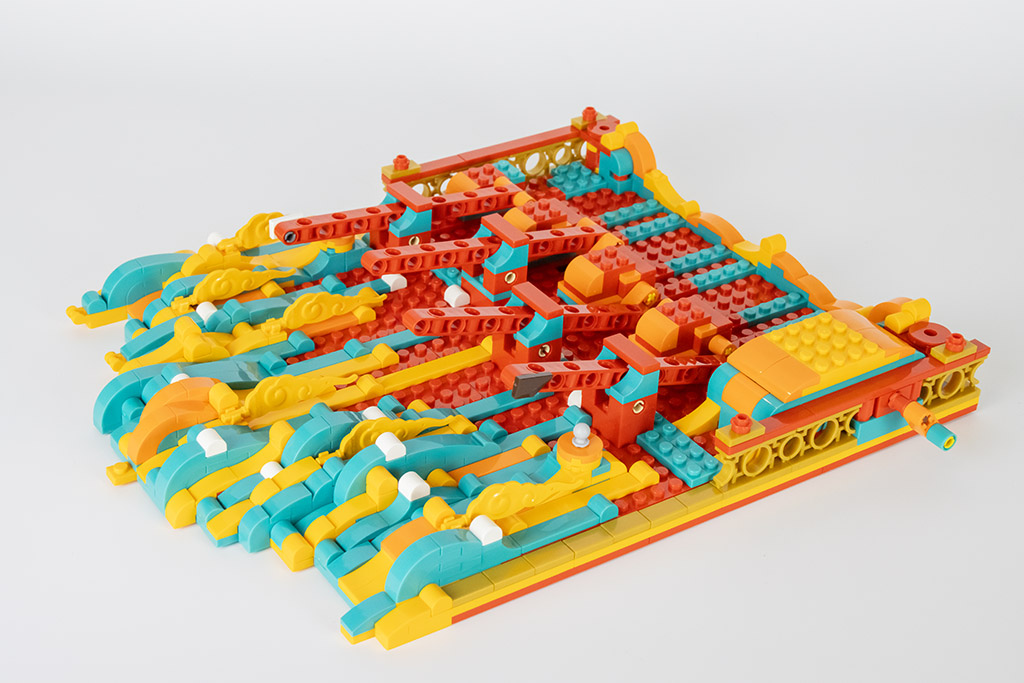 Die Mechanik ist im Grunde einfach aber effektiv. Die Technikstangen werden im Winkel versetzt miteinander verbunden und dadurch ist jede der Stangen zu einem anderen Zeitpunkt am höchsten Punkt.