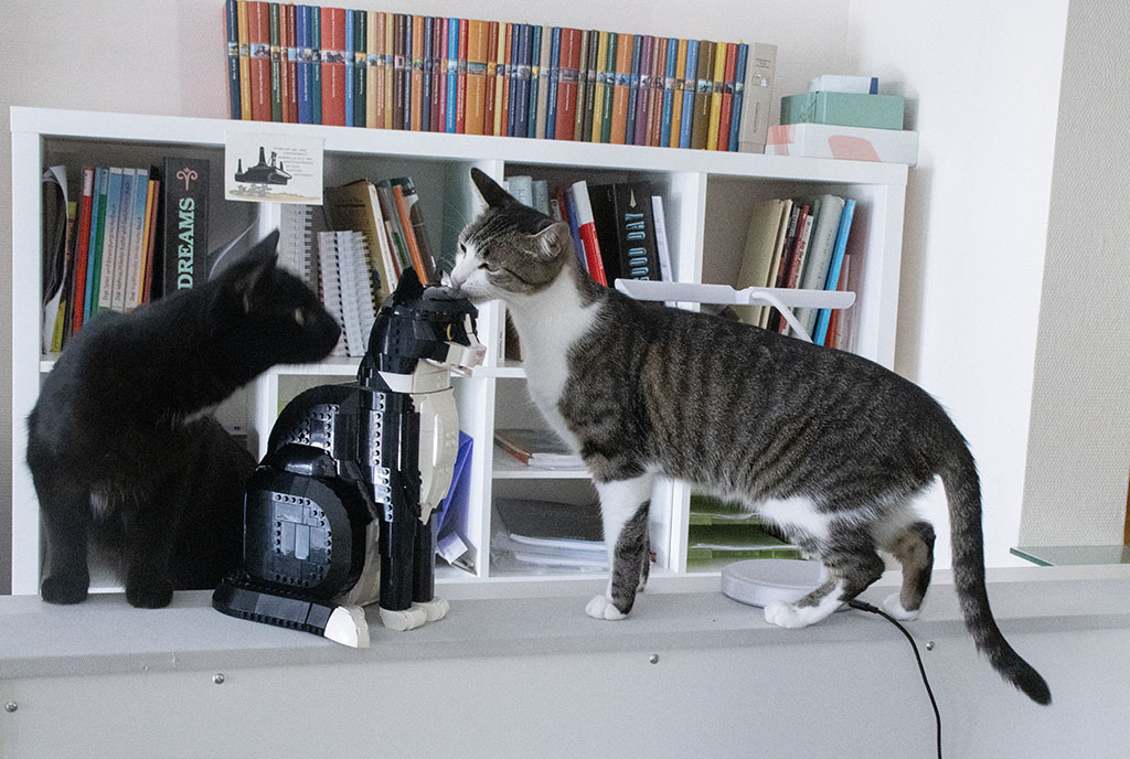 Als großer Katzenfan "musste" ich die Tuxedo Katze einfach kaufen. Ich war neugierig, wie sie dann zusammengebaut aussieht und wie groß sie neben den echten Katzen ist. Fotos sind das eine, aber ein Modell direkt vor sich stehen zu haben dann doch etwas ganz anderes.