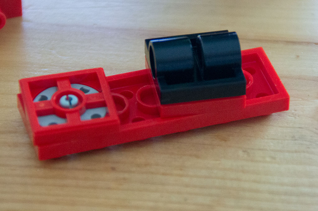 Fasziniert hat mich, mit welch einfachen Teilen noch gebaut wurde. Vor allem wie die Lenkung realisiert wurde hat mich begeistert. Durch den grauen Stein oben, kann das Set wunderbar manövriert werden, was den Spielspaß ungemein erhöht. Es gab zu der Zeit wohl noch nicht die Technikstange mit dem „Knubbel“ hinten, weswegen die Stange durch ein Technik-Rad am Herausfallen gehindert wird. Ziemlich geniale und einfache Lösung. Platz ist genug vorhanden. Das stört also auch nicht.