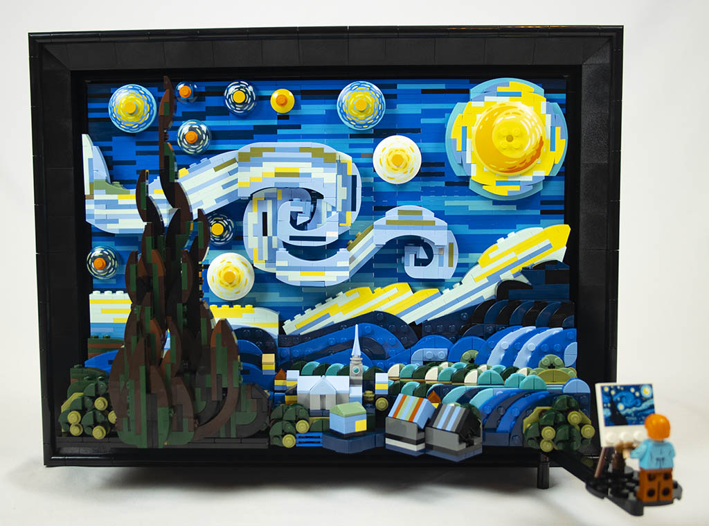 La nuit étoilée ist eines der bekanntesten Ölgemälde van Goghs. Es entstand 1889 in Südfrankreich und ist seit 1941 im Besitz des MoMA in New York City. Als klar wurde, dass es das Set bald aus LEGO geben würde, war ich begeistert. Ich war sehr gespannt auf den Zusammenbau, da ich mir nicht so recht vorstellen konnte, wie das Gemälde aus LEGO Form annimmt.